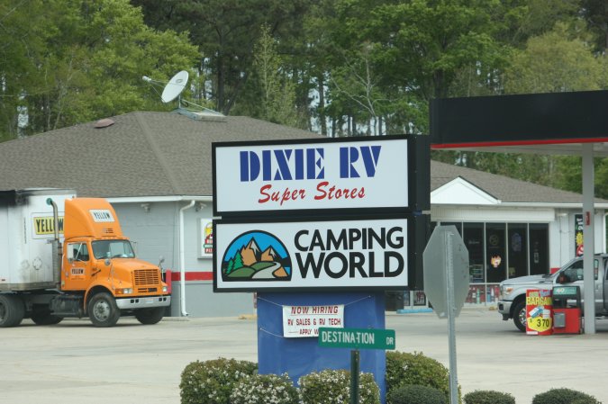 We stopped a Camping World to purchase a propane campfire. More