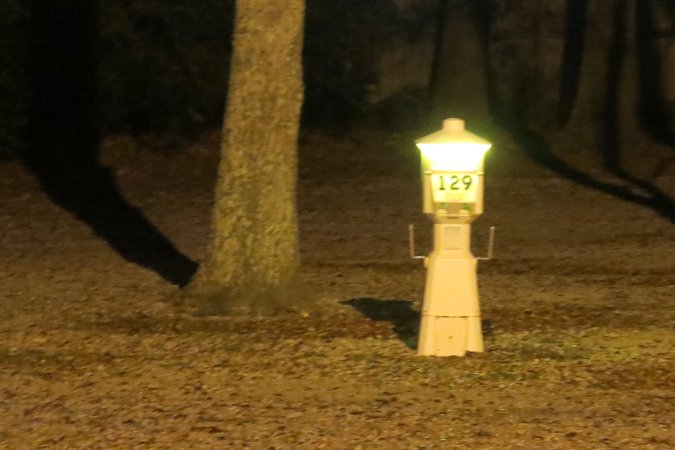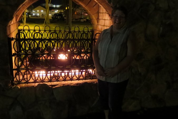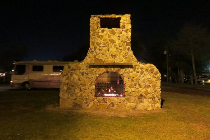 The RV park has a gas fire pit that is on every night.