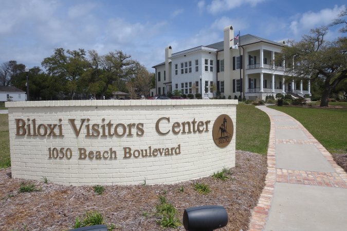 We are at the information center to get on the train tour of Biloxi.