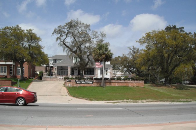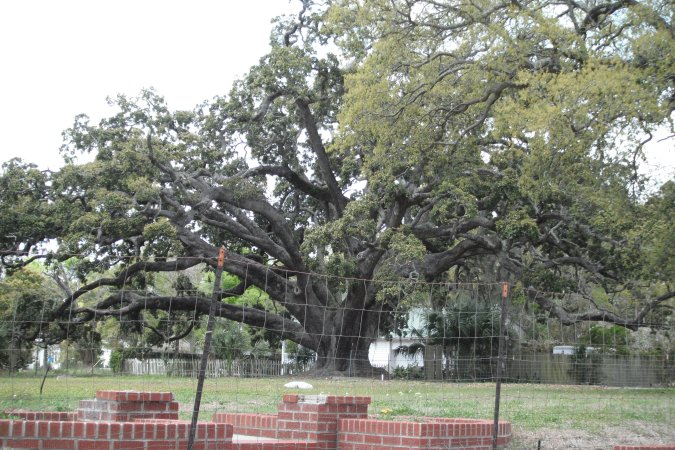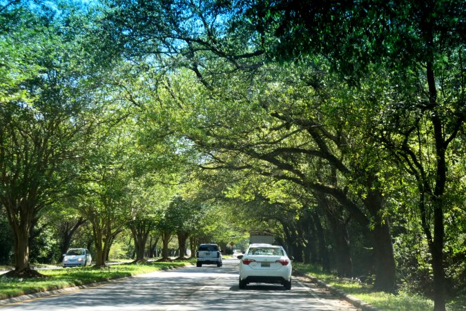 Between the big live oaks were big mansion from the turn of the