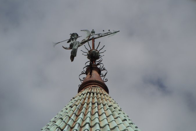 This witch weather vane has survived over 100 years of hurricanes, even