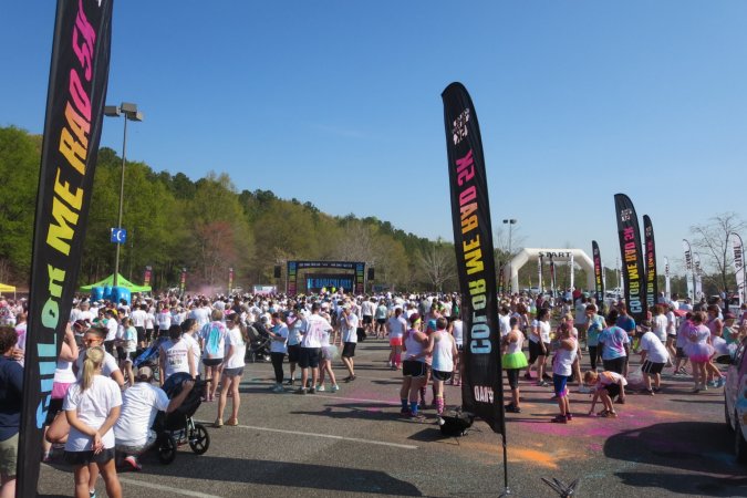 coloured corn starch and run/walk a 5 k race to raise money for a