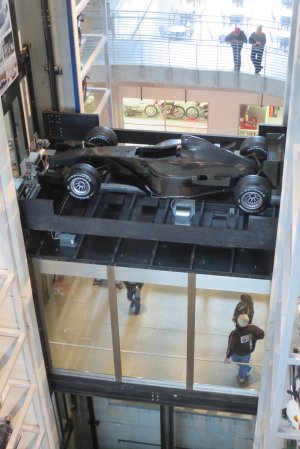 Even the top of the elevator has a racing car on it.
