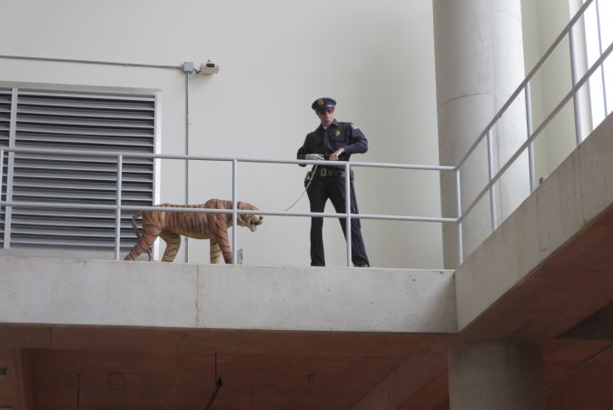 It is not a real one, the tiger and the policeman!.