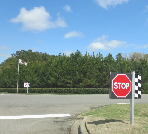 Even the road signs are all related to racing.