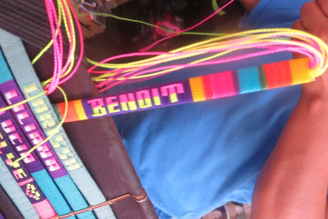 Ce jeune homme nous a promis de nous faire un bracelet avec notre nom