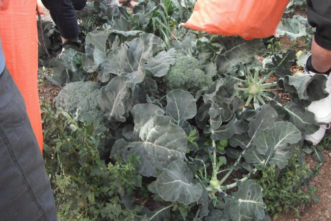 belt taking the lettuces to the center. The lettuce is bagged and then