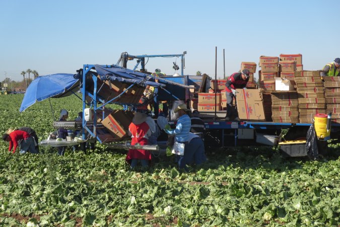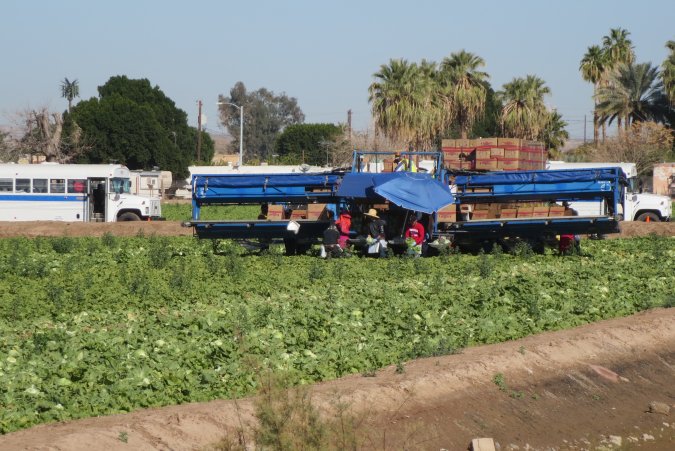 It is quite a sight just to look at the lettuce being harvested so fast.