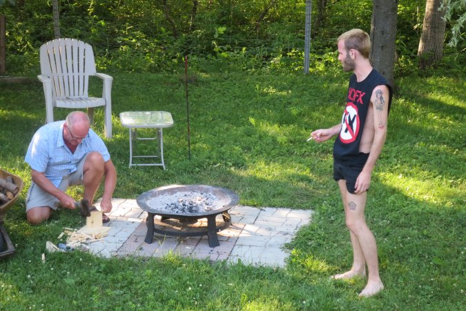 Benoit hasn't started a campfire in a while so he is the fire starter.