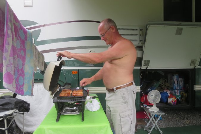 Tuesday, I start the day by cooking my breakfast sausages. I