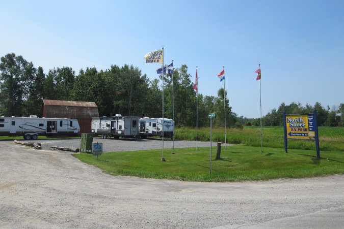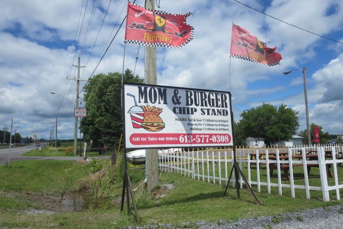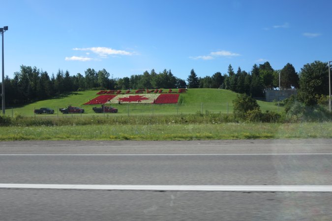 Driving by Belleville and the Canadian (flower) flag on our way to