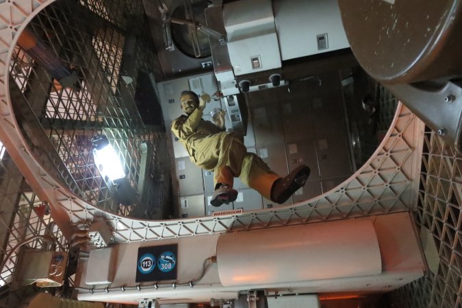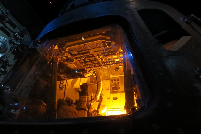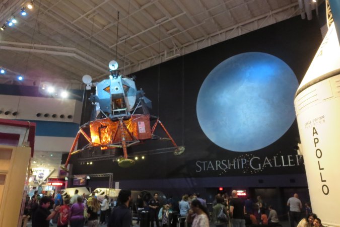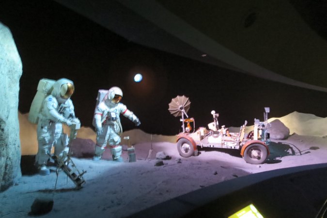 rugged terrain and to the right, a single vehicle for astronaut and on