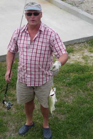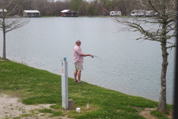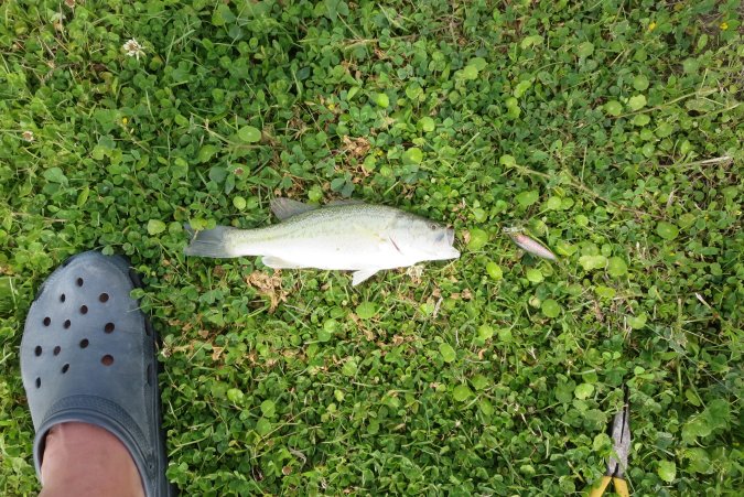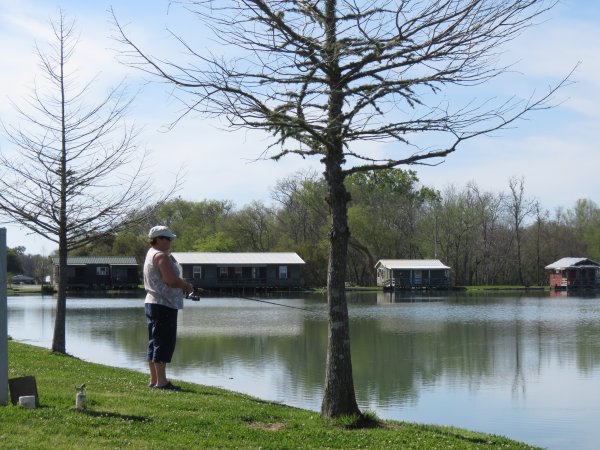 Back from her bike ride, she tries her luck fishing and got ... nothing.