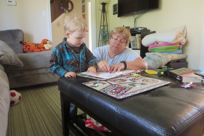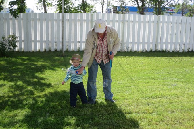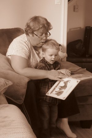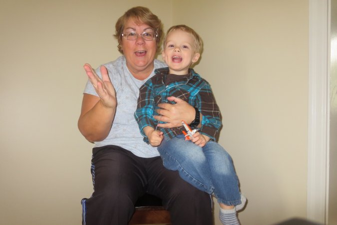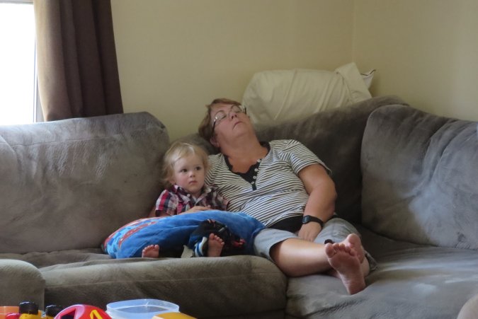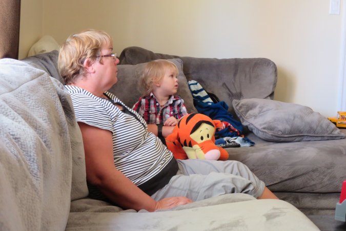Gabriel and Grand-Maman watching Jeremy.