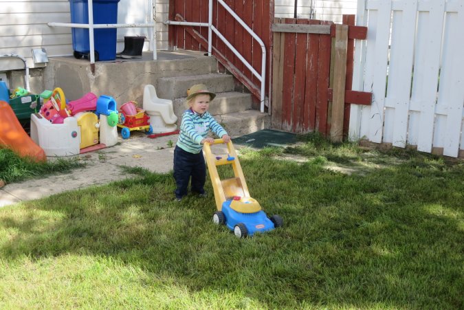 Gabriel can cut the grass too!