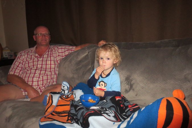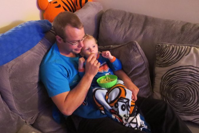A snack with daddy before going to bed.