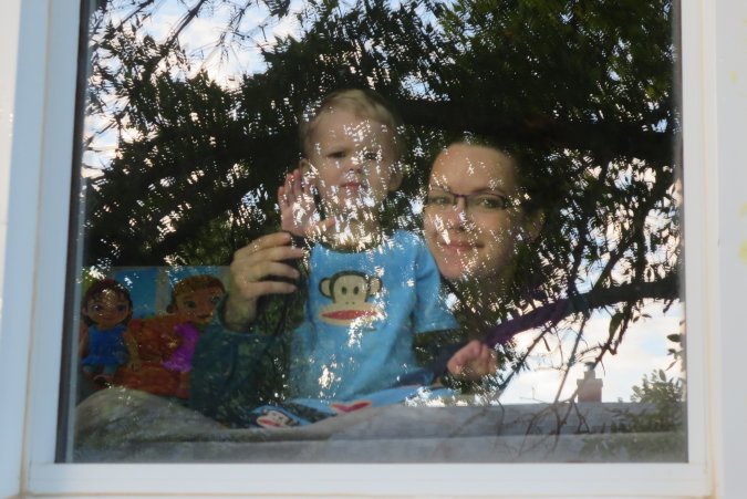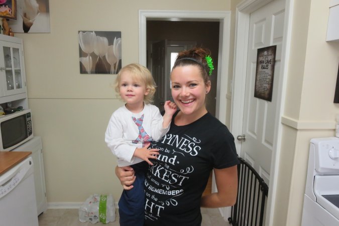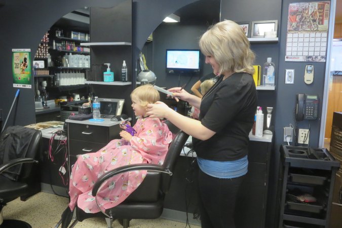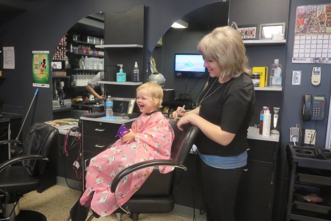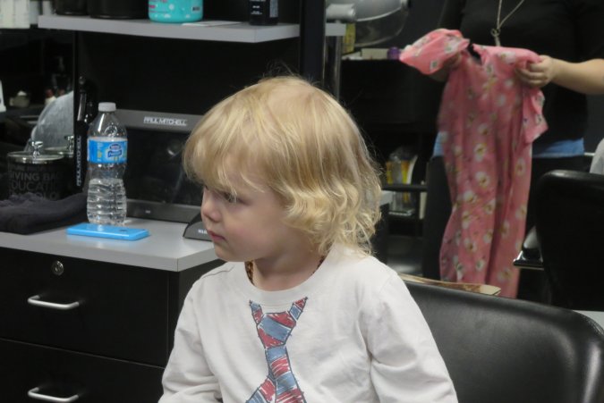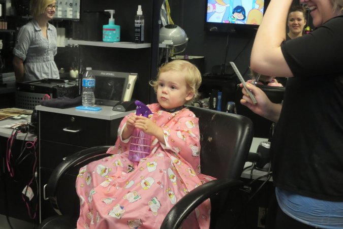 Danielle on her way for Gabriel's haircut.