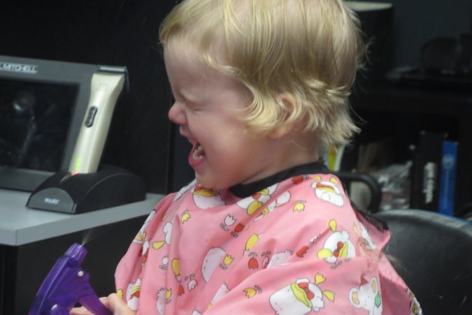 To keep Gabriel busy while cutting his hair, they gave him a bottle to