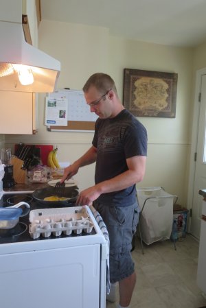 We only have two eggs for breakfast and I decide to give them to