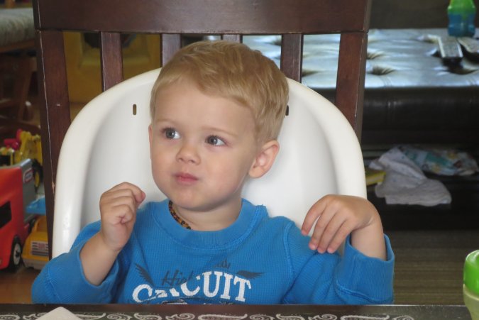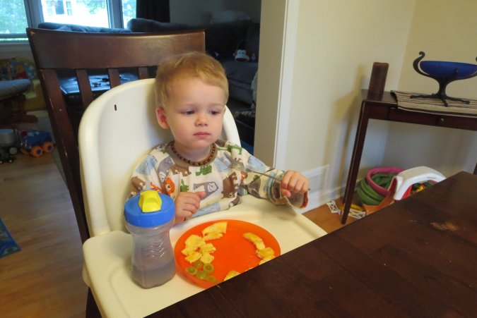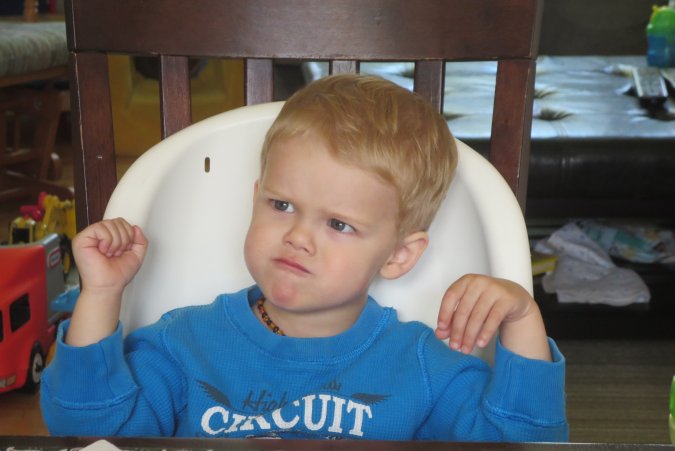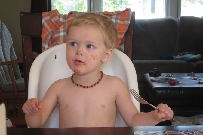 Dîner time with one tired Gabriel.