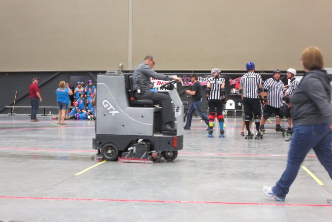 Between both periods they have a mini Zamboni cleaning the rink.