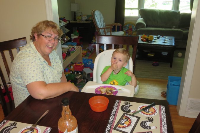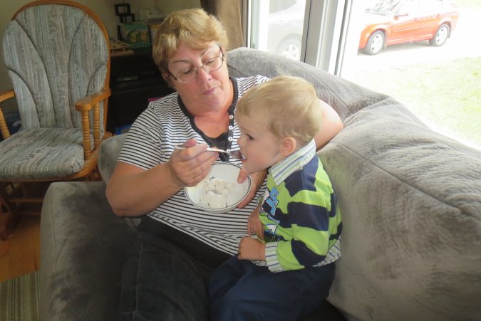 Grand-Maman spoiling Gabriel with ice-cream.