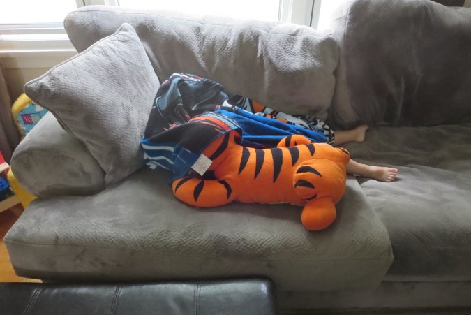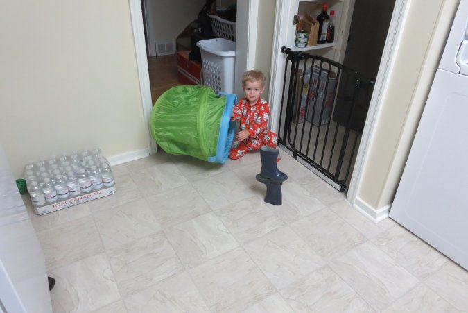 Gabriel hiding in his fort.