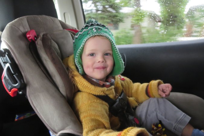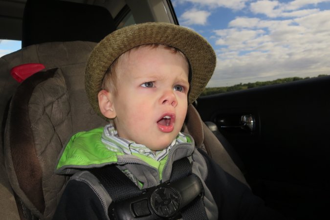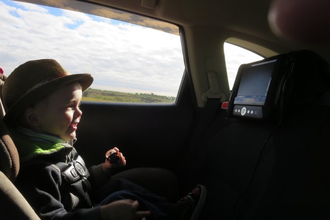 Gabriel is watching a movie as we head to Regina.
