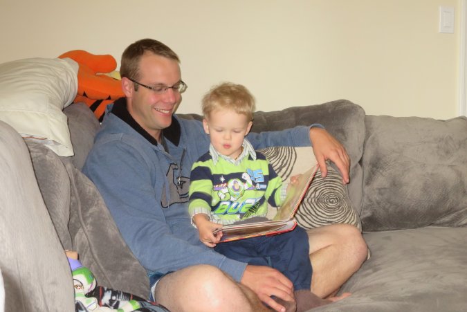 After a good nap, some reading with Daddy.