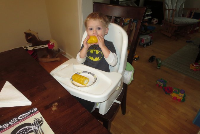 Gabriel is very good at eating corn on the cob.