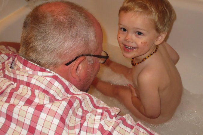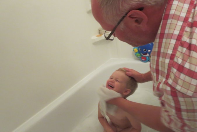 After a good bath, a good hug with daddy.