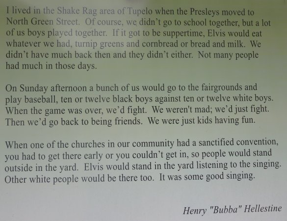 We liked visiting the city of Tupelo and the Elvis site. We have to get