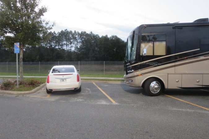 The BIG parking lot is empty, but no, he has to park in front of the MH
