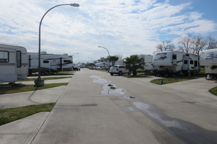 cities. Here we are coming up to our new home, Marina Bay RV Resort.