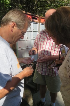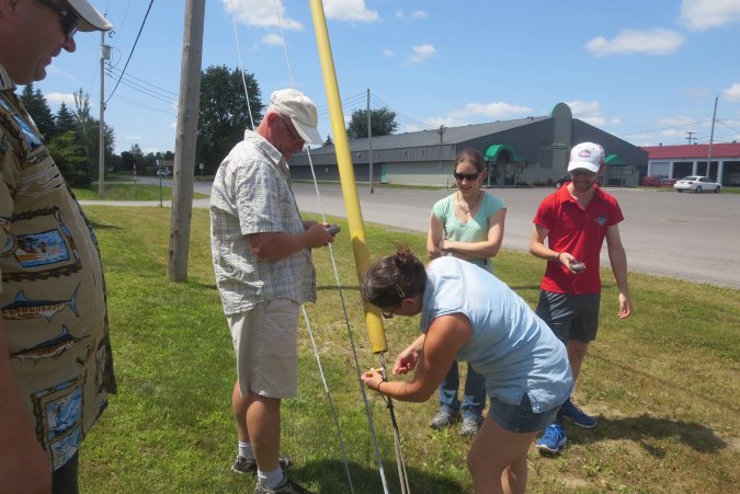 This cache was a fun one. Patrice is un-tying the cache so it