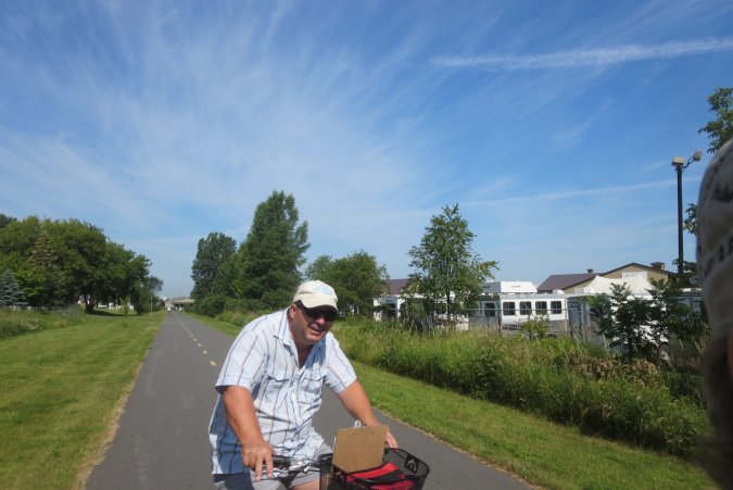We are on the other side of the river, in Sorel, on the bike path and