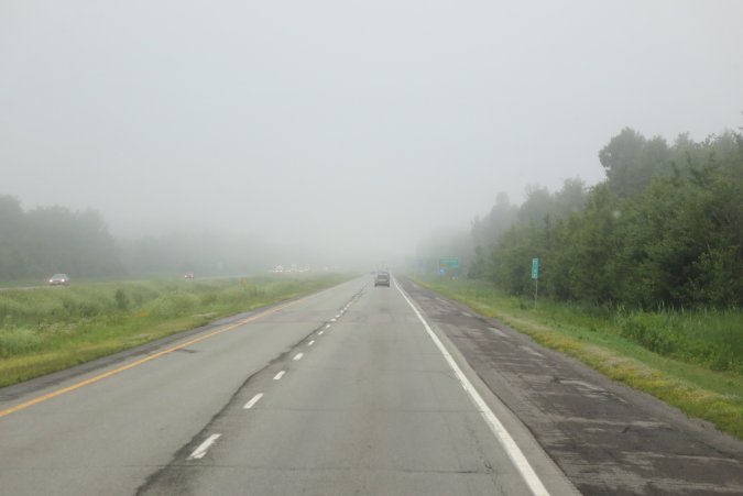As we leave Berthierville, we hit some fog.