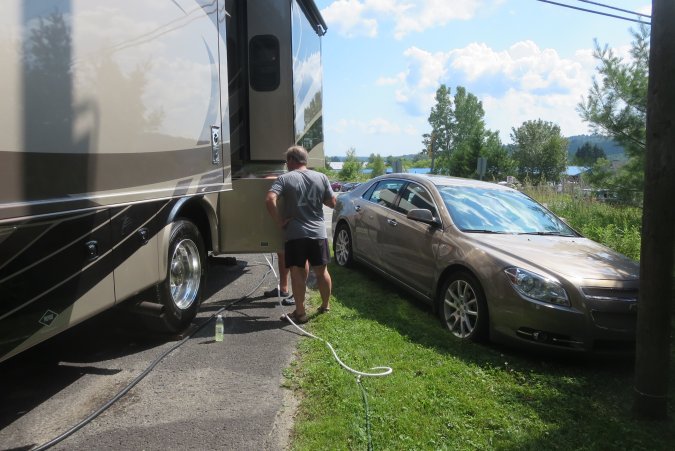 As usual, we have to wash the car after pulling it behind the motorhome.