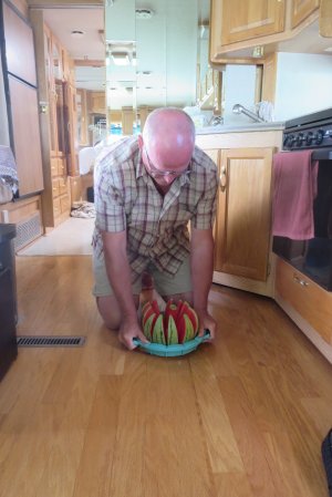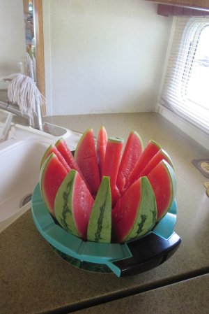 Yesterday, I purchased a watermelon cutter. I am trying it on