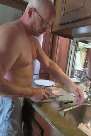 Here I am getting a large pork roast cut to feed both of us.