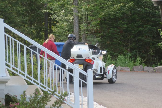 Julien is giving us a ride on his spider motorcycle. WOW!