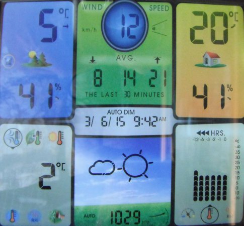 By 8 o'clock, here what it is. Top left corner is the temperature