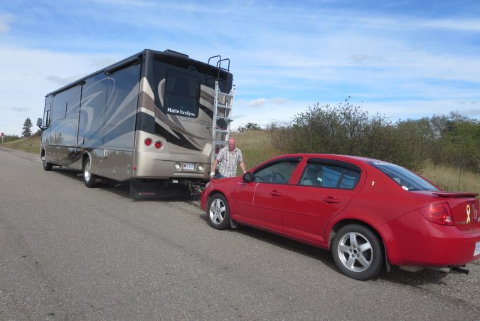 up the car to the MH (motorhome), we finally got on the road by 8 am.