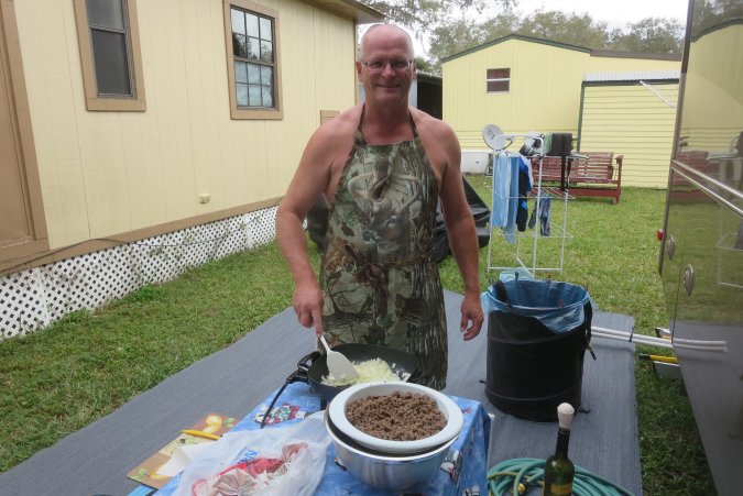 I am cooking the onions and hamburger meat for the sauce. Our slow