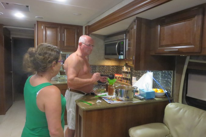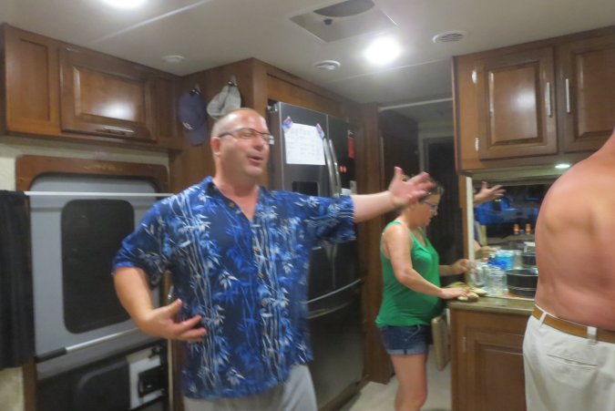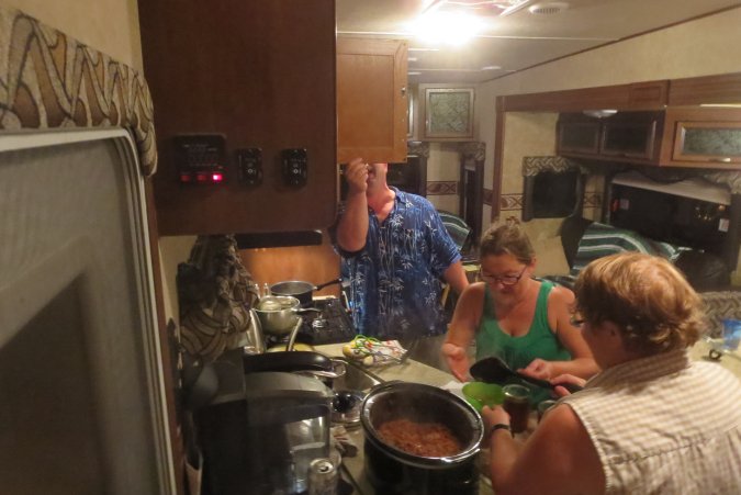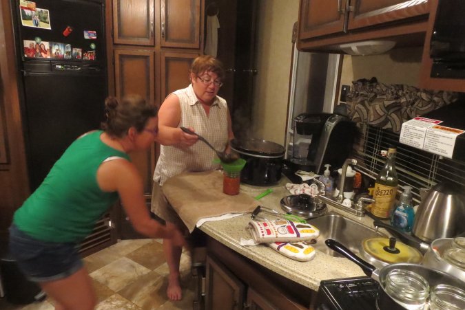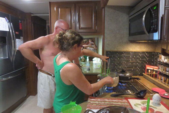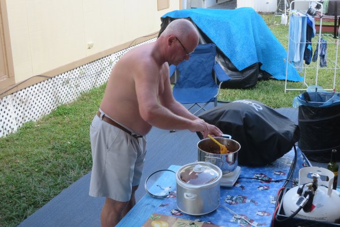 Now that the sauce is cooking slowly, we play some games of shuffle