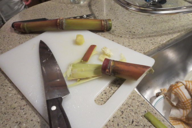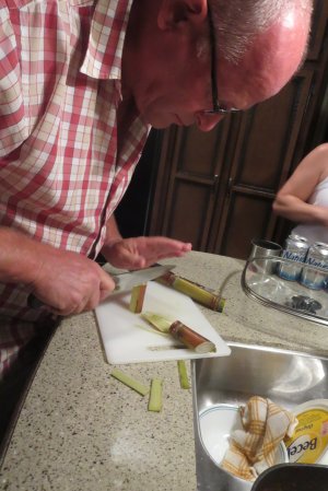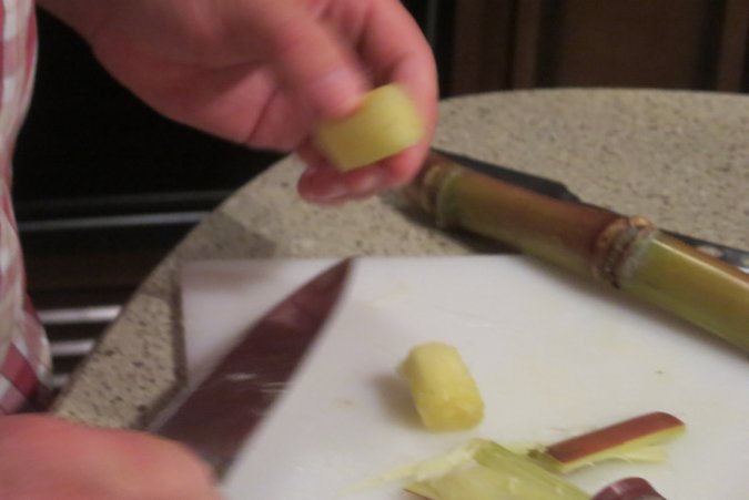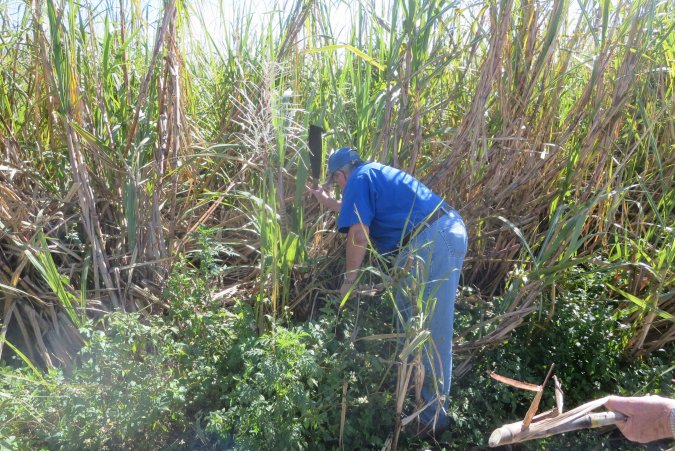 We got a sugar cane at the tour. I cut it so Michele, Manon and