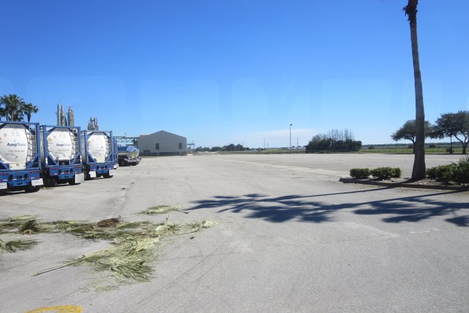 Usually this parking lot is full of trucks waiting to dumps the oranges