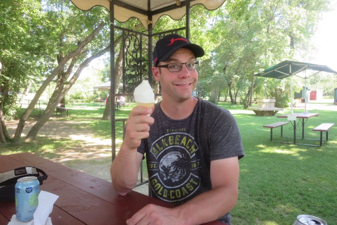 After 180 km, we make a pit stop at the Walmart in Swift Current.