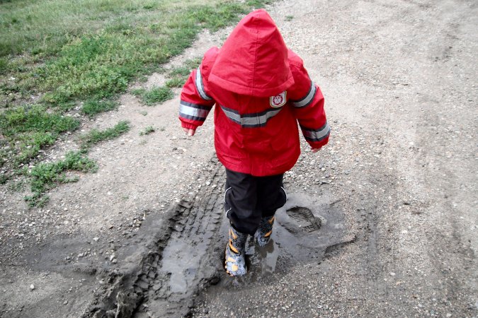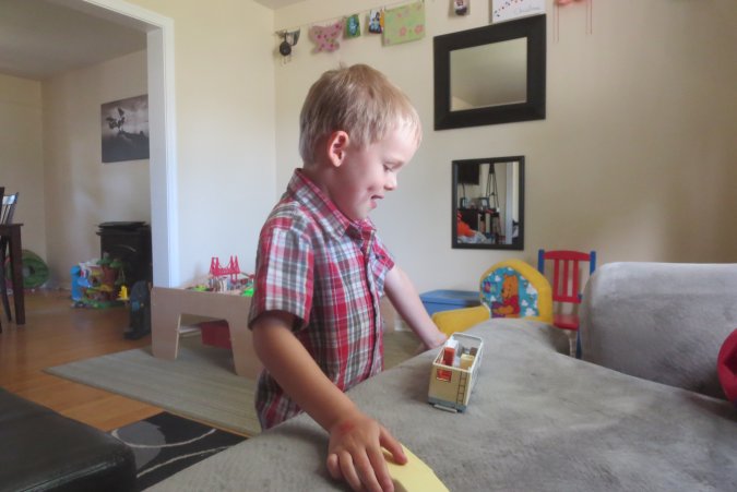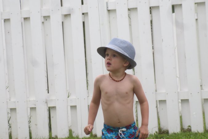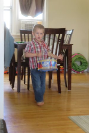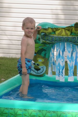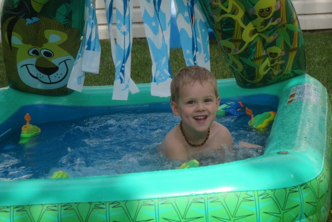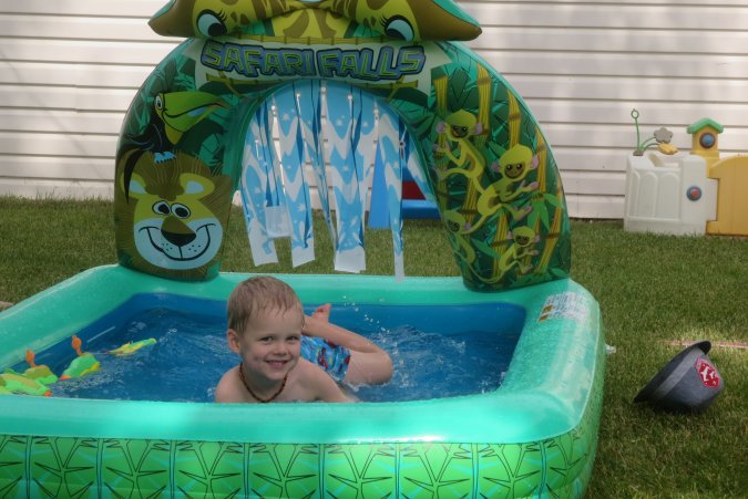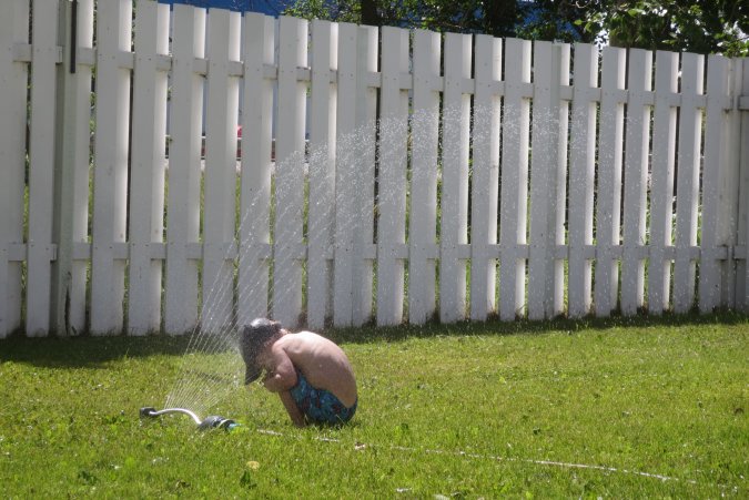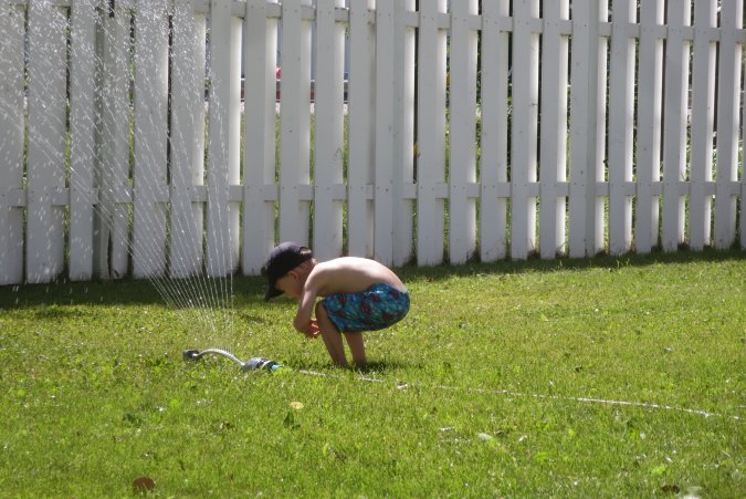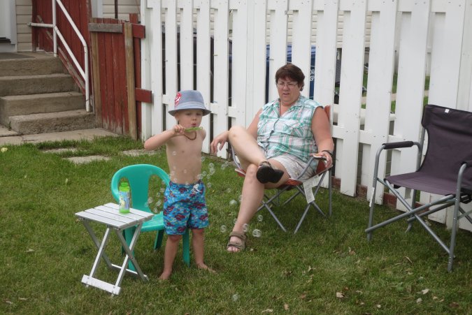 Making some bubbles and chasing bubbles. When it is hot outside,