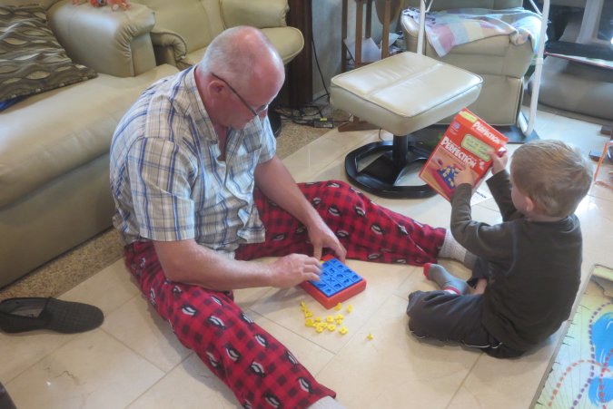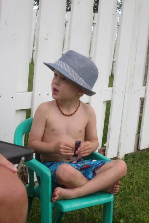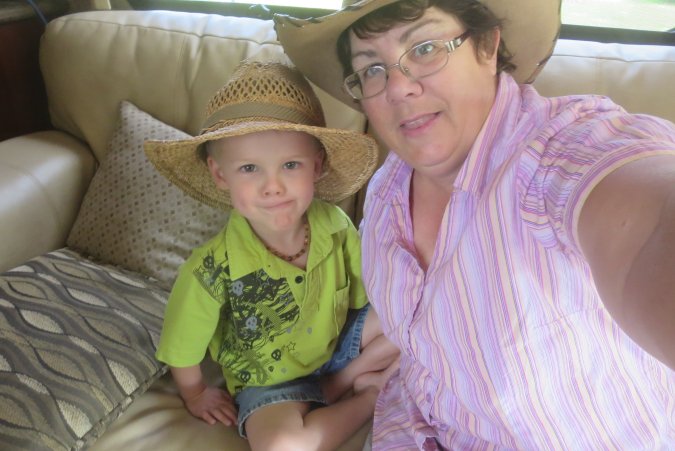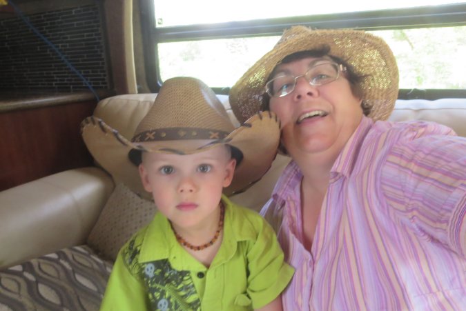 Grand-maman and Gabriel fooling around with my hats. Don't they